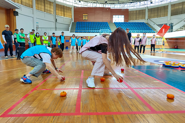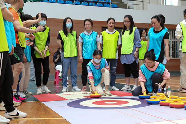 活动伊始,素质拓展活动教练带领大家进行了趣味热身运动,并在运动中指导开展“贪吃蛇”游戏项目,迅速拉进了彼此间的距离。随后,辅导员们分为四支队伍,先后进行了“接力井字棋”“旱地冰壶”两个游戏的比拼。比拼中,各团队展现出了积极向上,团结奋进的良好精神风貌,老师们快速融入团队、齐心谋划,合理分工、配合默契,完成了一个个极具挑战性的任务。活动过程中,辅导员们激情饱满、巧用智慧、拼搏竞争,展现团队精神的同时,也愉悦了身心,传递了快乐,经历了一场减压与成长之旅。