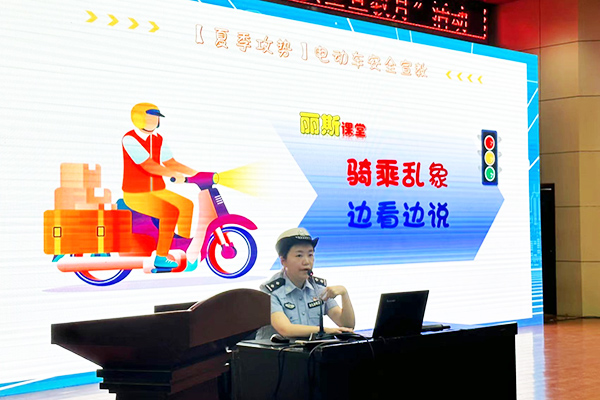 6月8日,武汉市公安局江岸区交通大队车管中队“丽斯交通课堂”走进我校,开展交通安全进高校宣传活动,与师生共话交通安全。民警彭丽斯围绕骑行电动自行车交通安全常识,用通俗易懂的语言讲解了交通法律法规,并结合近年来一些典型的“涉学”电动自行车交通事故案例,对交通事故给人们带来的危害以及对社会造成的影响进行了详细剖析,并与师生们互动、探讨了骑行电动自行车如何避免交通事故发生的正确安全做法,引导师生主动佩戴安全头盔,遵守交通规则。