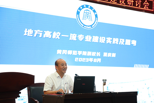 本次研讨会特别邀请了黄冈师范学院副校长夏庆利作专题报告。报告中,夏庆利以“地方高校一流专业建设实践及思考”为题,从国内外大学的诞生与发展、学科类别及专业的产生与设置、专业建设评估、地方高校一流专业建设的必要性、地方本科院校一流专业建设的策略、国外高校专业建设经验与启示及黄冈师范学院一流专业建设实践等方面进行了讲解,报告既有理论高度,又有实践深度,对学校进一步加强专业建设具有很强的启发性。