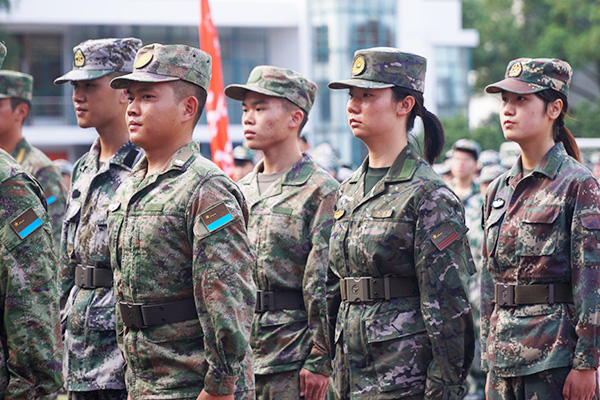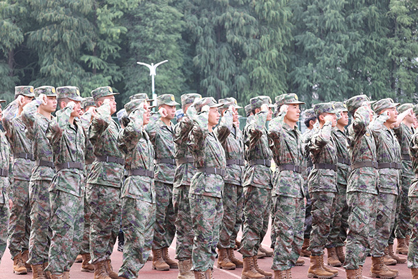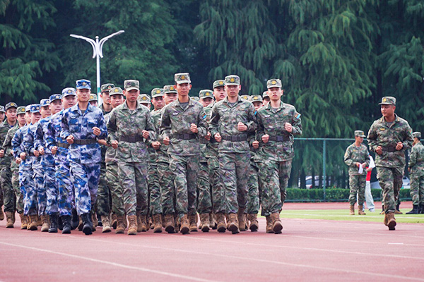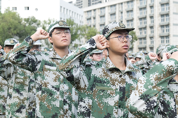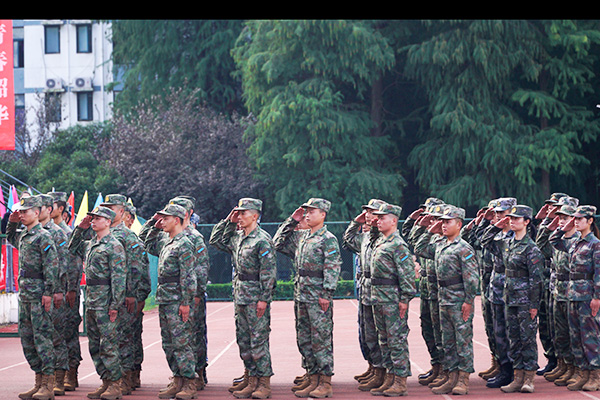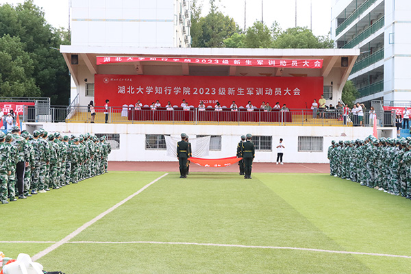 大会在雄壮的国歌声中开始,人民武装部负责人王刚宣读了《湖北大学知行学院关于成立2023年军训团决定》。紧接着,承训全体教官进行了相关军事训练项目的展示,教官们精神抖擞、气宇轩昂,挺拔的军姿、标准的跨立、娴熟的转体、整齐的正步......一招一式赢得现场阵阵掌声。随后,全体教官在军训教官代表的带领下进行了庄严宣誓。全体参训学生进行集体宣誓,表达了服从命令、听从指挥、严守纪律、刻苦训练的坚定决心。