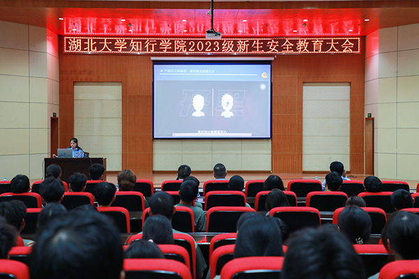 活动中,谌家矶派出所崔警官以详实的案例、生动的讲解,针对大学生预防网络电信诈骗、预防帮信罪、高校禁毒、校园网络安全、防谍反邪、防暴恐、消防安全等方面为学校2023级新生进行全面的法制宣讲。她还从警校联动机制、户籍政策、师生出行安全、校园防盗抢、校园防霸凌等方面对师生作了安全提示。派出所领导介绍了辖区治安及平安校园共建等情况,希望同学们共同参与和维护平安和谐校园环境,在知行成长成才。
