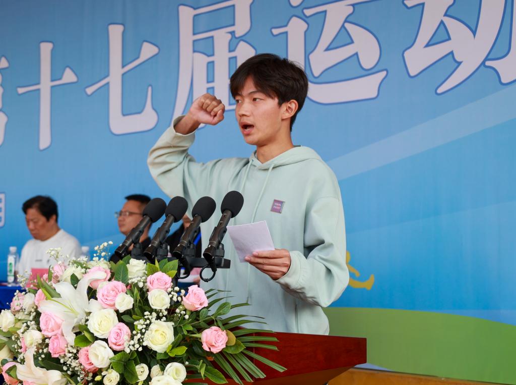 党委书记彭德忠宣布学校第十七届运动会开幕。