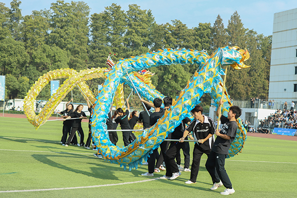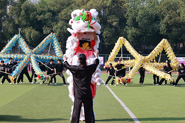 开幕式上,运动员代表、裁判员代表分别宣誓。党委副书记黄智凌宣读了“体育道德风尚奖”和“最佳拼搏奖”评选方案。入场环节中,九个二级学院结合专业特色,以师生喜闻乐见的形式进行了精彩纷呈的入场表演,展现了知行学子的良好精神风貌。大型文艺表演中,团体啦啦操队员的灵动表演整齐划一,尽显知行学子年轻的活力与张扬。龙狮表演中,巨龙时而翻腾扭转,醒狮时而昂首阔步,把龙、狮生动的神态展现得淋漓尽致,高超的技艺赢得了现场群众的阵阵喝彩。