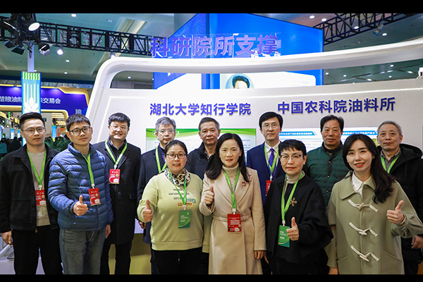 湖北大学知行学院党委书记彭德忠、院长高连顺、副院长钟春敏和教务处、粮食与食品工程学院相关负责人及师生代表应邀参加大会。学校粮食与食品工程学院“油茶果烘干机及茶果壳分选机”“可降解生物质餐具”“燕麦米糠饼”等10多项科研成果同时亮相交易会展厅,吸引了不少企业负责人和市民参观。年度盛典中,党委书记彭德忠与相关领导应邀为荣获“湖北十大好吃大米”“湖北十大优质菜籽油”“湖北五大特色粮油产品”的企业代表颁奖,院长高连顺代表学校上台获颁首批“荆楚粮油”杯湖北省粮食行业特殊贡献奖。期间,学校领导还前往参展的湖北黄袍山绿色产品有限公司、湖北向上食品股份有限公司、湖北耀荣木瓜生物科技发展有限公司等学校对口服务合作企业,了解企业产品及发展情况,并就进一步深化校企合作,与企业负责人亲切交流。