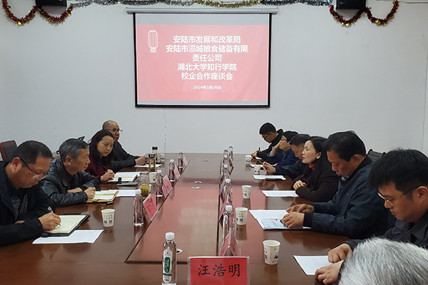 3月26日下午,安陆市发展和改革局党组成员、副局长何宏,安陆市涢城粮食储备有限责任公司经理向炳丽一行来校,就深入开展校地校企合作进行洽谈。学校副院长钟春敏热情接待了何宏一行。人力资源部、教务处、粮食与食品工程学院相关负责人及专业教师参加座谈交流。