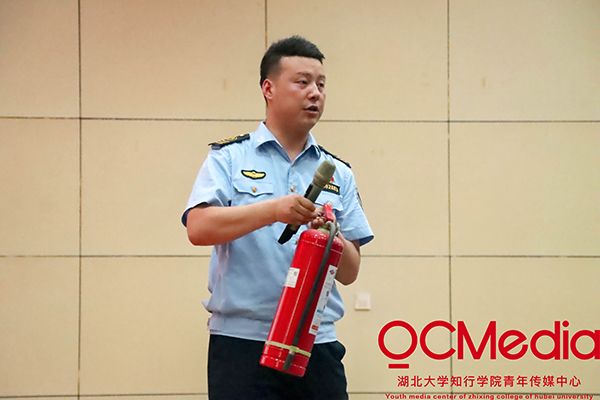 活动中,消防员刘教官为大家进行了消防安全知识普及,围绕学校消防重点工作,消防隐患排查,学生公寓、学校重点消防隐患部位防火安全知识,火灾初发处置等方面进行宣讲,并详细介绍了火灾逃生自救的技巧,讲解了灭火器、防毒面具、湿毛巾、消防水带等消防用品的用法。