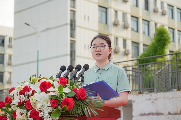 毕业生代表袁鹤绮在发言中总结了自己在大学四年的学习生活与取得的成绩,感恩母校和老师的关心和帮助,表示将永远铭记“厚德载物,认知践行”的校训精神,在青春的赛道上接力奋斗,实现个人价值的同时更好地服务社会。