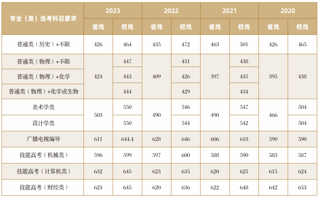 学校近四年湖北本科各科类录取分数线