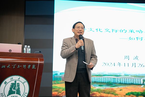 11月26日晚,华中师范大学国际处副处长兼孔子学院工作处副处长周波应邀来校开展 “跨文化交际的策略与方法及2025年学生出国境项目申报解读”的专题讲座。副院长刘齐热情接待了周波副处长。