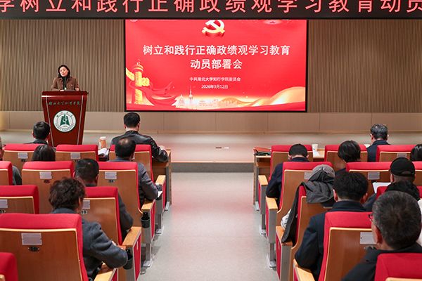 与会人员集体学习了上级关于树立和践行正确政绩观学习教育的相关会议精神。党委副书记黄智凌传达了上级相关文件精神,并结合学院学习教育工作方案进行了工作部署。